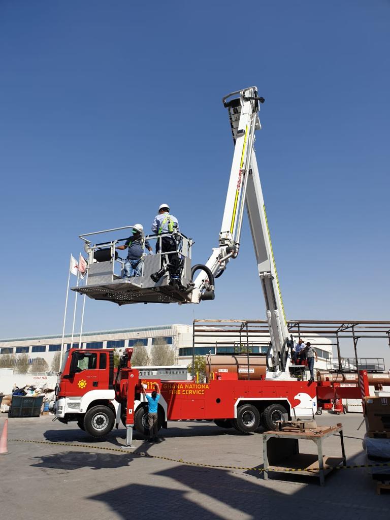 YOTEK is proud to have supplied the Ghana National fire Service with this customized Hydraulic Aerial Platform as its the first of its kind in Ghana since Independence and the first in the sub-Saharan region. Its been designed to operate in tropical zones and in high temperature and as well in high humidity atmosphere.